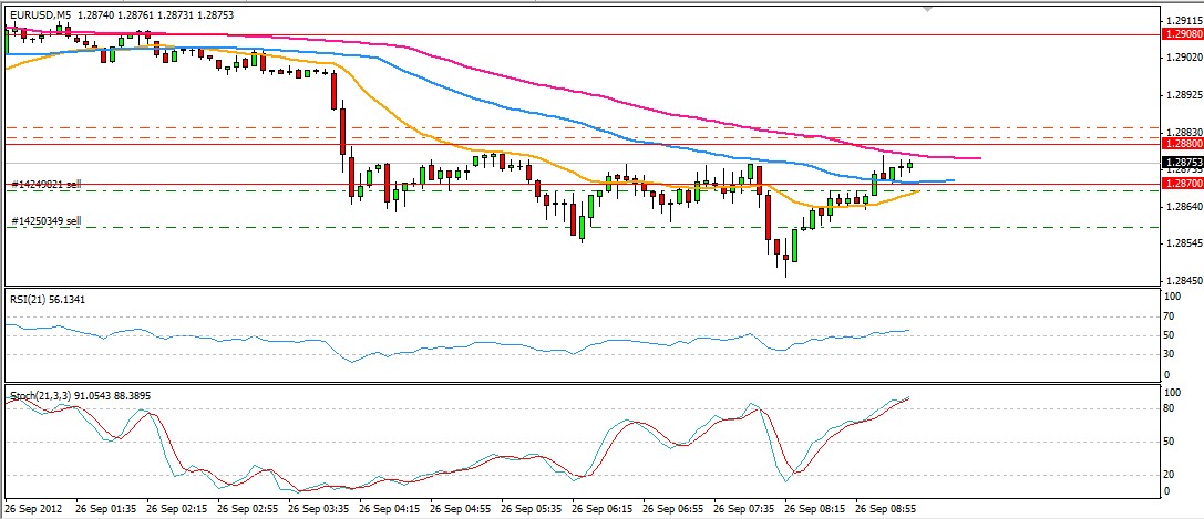 Le marché reste baissier l’euro est venu toucher le support 1.28700 puis l’a cassé.